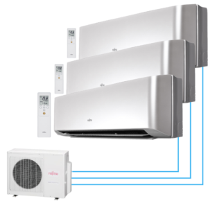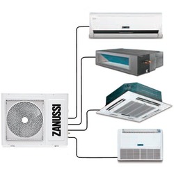 Мультисплит-системы являются разновидностью сплит-систем. Отличие в том, что к одному внешнему блоку подключается не один, а несколько (от 2 до 8) внутренних блоков одинаковой или разной мощности и разных типов. Такая конструкция системы кондиционирования позволяет экономить место на стенах зданий и не портить вид наружными блоками.