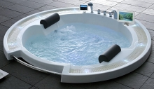 Размеры товара: Высота 87 Длина 210 Ширина 210 Характеристики товара Аэромассаж есть В комплекте подсветка бортика ванны Гидромассаж есть Защита от сухого пуска есть Исполнение форсунок хром Каркасесть в комплекте Комплектация смеситель с изливом, душевая лейка, съемная панель Массаж спины есть Материал акрил Мощность на соса, Вт 1500 МультимедиаTV 8", пульт ДУ, радио Объем, л 550 Озонирование есть Подголовник есть, в комплекте Регулировка интенсивности массажа есть Слив-переливесть, в комплекте Тип управления электронное Установка встраиваемая Форма круглая Форсунок аэромассажа 16 Форсунок гидромассажа 16 Хромотерапия есть Гарантия 10 лет - акрил, 3 года - оборудование Цвет белый Ванны как главный элемент в интерьере санузла выбираются по строгим критериям. Но благодаря многообразию в коллекциях современных производителей найти идеальный вариант для помещения любой конфигурации не составляет труда. Акриловая ванна Gemy G9060 O — в числе самых популярных моделей. У чаши оптимальный объем для комфортных гигиенических процедур и большой запас прочности. Она хорошо сохраняет температуру воды, а также презентабельный вид в любых условиях. Износостойкая эмаль легко переносит негативные воздействия и контакт с моющими средствами, поэтому поверхность остается безупречной в течение всего периода эксплуатации. Срок службы у изделия впечатляющий, поэтому вложение в размере 251775 руб полностью окупится.