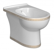 Биде Della Globus Версаче золото DE3114000018: санфарфор сочетается с компактом Globus набор крепежа к полу хромированное декоративное кольцо перелива декор: Версаче золото Биде Della Globus Версаче золото DE3114000018 размером 58.5х37х41.5 см., страна-производитель Россия. Выпуск канализации горизонтальный (в стену), вертикальный (в пол). Биде изготовлено из материала фарфор. Гарантия производителя 10 лет. Долговечность и стильный вид — главные требования к любой сантехнике. Биде — не исключение. Они тоже должны органично вписываться в пространство и выдерживать любые негативные воздействия. Биде Della Globus Версаче (золото) DE3114000018 — идеальное решение в этом плане. Модель стоимостью 7200 руб компактна и надежна благодаря высокой прочности используемого материала. Не боится повышенной влажности и температурных скачков, характерных для санузла. Поверхность устойчива к налетам и другим загрязнениям, обладает антибактериальными свойствами, поэтому для поддержания чистоты не требуется больших усилий. У сантехники универсальный дизайн, поэтому она хорошо будет смотреться в любом интерьере.
