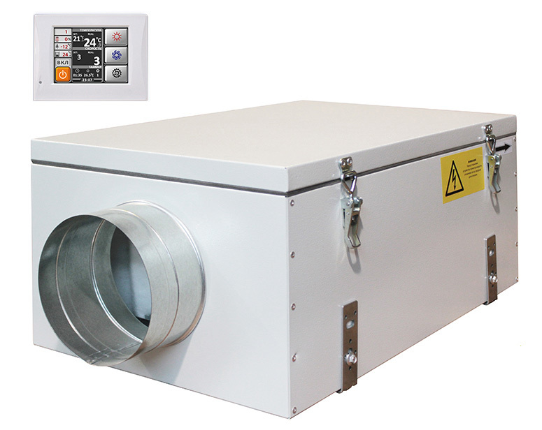 - Комплектуются встроенной внутрь системой автоматики, которая позволяет регулировать производительность вентилятора, устанавливать температуру приточного воздуха, контролировать степень загрязнения фильтра.