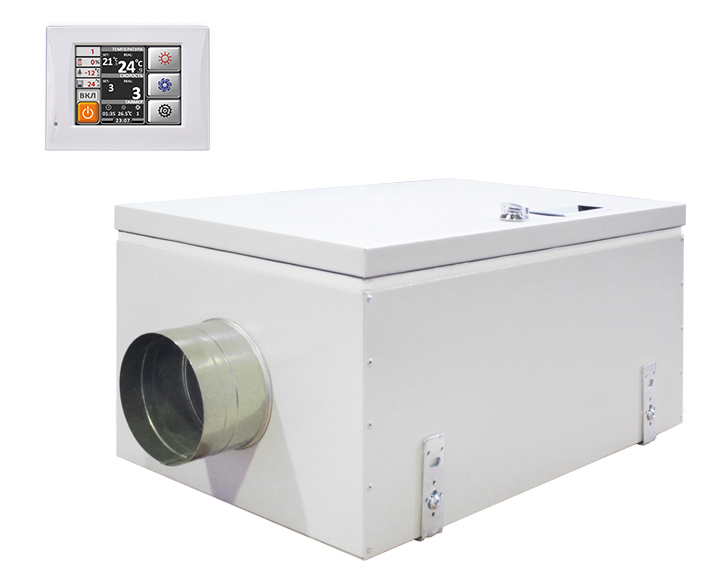 - Комплектуются встроенной внутрь системой автоматики, которая позволяет регулировать производительность вентилятора, устанавливать температуру приточного воздуха, контролировать степень загрязнения фильтра.