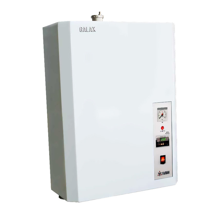 Электродные котлы новой серии Галан ГАЛАКС G352 изготавливаются в двухконтурном исполнении. Работа котла по электродному принципу упрощает процесс регулирования мощности и имеет возможность ее перенастройки при необходимости отапливать больший объем. При двухконтурной схеме работы первым нагревается бойлер до (55 - 60°С). Затем через 3 мин автоматика переходит в режим нагрева контура отопления.