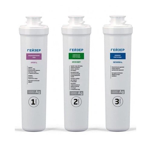 Комплект Гейзер для Смарт универсальный состоит из 3 картриджей, обеспечивающих не только качественную очистку воды от ржавчины, хлора, различных примесей и бактерий, но и насыщающих ее кальцием. Изделия отличаются легкостью установки.