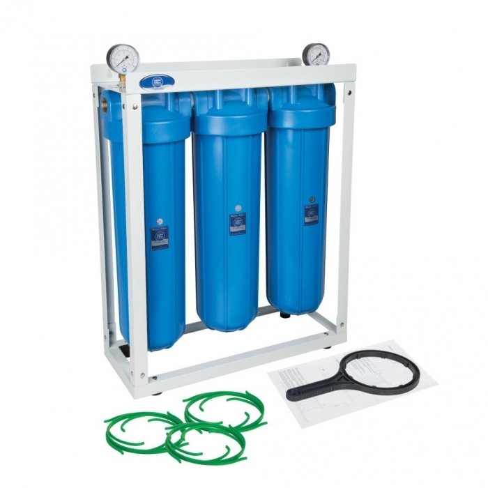 Гейзер-3И20BB (без картриджей) на раме представляет собой модель магистрального фильтра трехступенчатой фильтрации, предназначенного для обслуживания помещений различного типа. Конструкция закреплена на специальной раме, что облегчает монтаж оборудования. В комплект не входят картриджи.