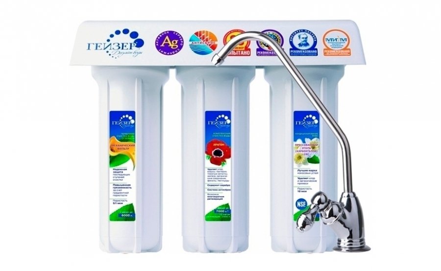 Если вы хотите всегда иметь чистую и свежую воду, то обратите внимание на проточный фильтр для жесткой воды Гейзер 3К люкс. Данный аксессуар имеет 3 ступени очистки. Первая это обезжелезивания воды. Вторая ступень – фильтрэлемент для железистый воды. Третья - это угольный картридж СВС, который улучшает показатели цветности и мутности воды. С таким фильтром гарантированно получите прекрасно очищенную воду, мягкую и избавленную от вирусов и бактерий.