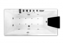 Размеры: 160 x 80 см Форма: Прямоугольная Вид ванны: Пристенная Высота: 65 см Объём: 250 л Технические характеристики и описание ванны: гидромассаж, 7 больших форсунок аэромассаж, 8 форсунок мощность насоса: 750 Вт мощность компрессора: 300 Вт смеситель с изливом для набора воды душевая лейка радио хромотерапия функция озонирования защита от сухого пуска подголовник слив-перелив съемный экран Ванны как главный элемент в интерьере санузла выбираются по строгим критериям. Но благодаря многообразию в коллекциях современных производителей найти идеальный вариант для помещения любой конфигурации не составляет труда. Гидромассажная ванна Gemy G9076 K — в числе самых популярных моделей. У чаши оптимальный объем для комфортных гигиенических процедур и большой запас прочности. Она хорошо сохраняет температуру воды, а также презентабельный вид в любых условиях. Износостойкая эмаль легко переносит негативные воздействия и контакт с моющими средствами, поэтому поверхность остается безупречной в течение всего периода эксплуатации. Срок службы у изделия впечатляющий, поэтому вложение в размере 133350 руб полностью окупится.