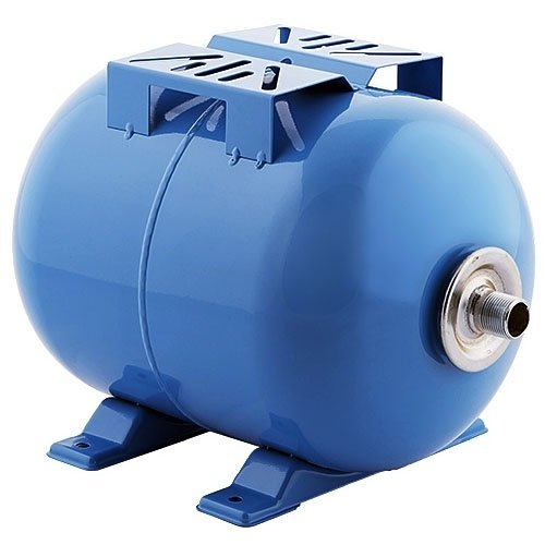 Джилекс 14 Г гидроаккумулятор горизонтального расположения на 14 л. Гидроаккумулятор успешно справляется с задачей поддержания постоянного давления в сети водоснабжения благодаря имеющейс внутри резиновой мембране. Насос нагнетает в бак воду, сжимая находящийся между мембраной и корпусом бака воздух. Далее, при потреблении воды, воздух выталкивает воду в сеть и нормализует давление.