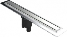 Длина: 500 мм; Ширина: 61 мм; Фактура: матовая; Монтаж: в пол; Цвет: хром; Решетка и рамка, нержавеющая сталь AISI 304; Двусторонняя установка решетки: металл и вклейка плитки с регулировкой по толщине плитки от 8 до 30мм; Сетка для волос, пластик; Желоб водосток, нержавеющая сталь AISI 304; Комплект гидроизоляции; Монтажная заглушка и регулируемые по высоте ножки, пенопласт; Самопромывный S-образный сифон РР: вертикальный выпуск D50 H60, пропускная способность 42л/мин, монтаж 360 градусов.
