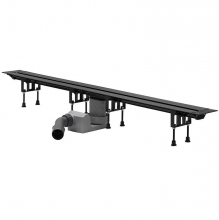 монтаж напольный встраиваемый необходимо комплектовать: решетка (686284) или (686291) длина 300-1200 мм, высота монтажа 95-165 мм ножки, гидрозатвор, съемный грязеулавливающий фильтр, фланец уплотнительный пропускная способность 0,8 л/с, для использования жидкой или рулонной изоляции