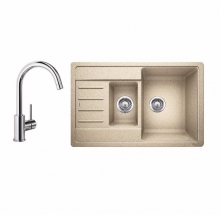 Мойка LEGRA 6 S Compact сочетает классическую форму и современную функциональность. Модель располагает одной основной и одной дополнительной чашами. Компактные габариты подходят для небольших кухонь. Ребристое крыло обеспечивает эффективный сток воды. На широкой площадке под смеситель удобно размещать аксессуары и кухонные принадлежности. Поверхность легко чистится и не выцветает под действием прямых солнечных лучей. Смеситель MIDA 517742 хром обеспечивает максимальный комфорт при работе за мойкой. Плавный ход рычажка позволяет задавать необходимую мощность и температуру воды при помощи легкого движения. Поверхность не нагревается, что исключает риск получения ожогов при соприкосновении. Кухонные мойки должны быть частью единого стилевого пространства, поэтому форма и дизайн — такие же важные критерии выбора, как прочность и износостойкость. Комплект Blanco LEGRA 6 S Compact + MIDA 521306M1 — популярная модель у ценителей практичности и безупречной эстетики. Изделие имеет вместительную чашу для удобного мытья продуктов и посуды, не боится царапин и сколов, устойчиво к загрязнениям любого типа (они легко удаляются обычными средствами). Способно выдерживать низкие и высокие температуры в широком диапазоне без ущерба для внешнего вида. И даже в режиме интенсивной эксплуатации такая мойка прослужит много лет. И за это время к первоначальной сумме 19950 руб не прибавятся никакие дополнительные расходы на ремонт.