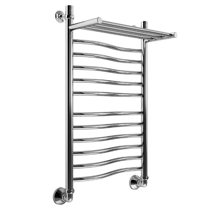 Водяной современный полотенцесушитель Маргроид Волна премиум с полкой отличается оригинальной передовой конструкцией и способен эффективно высушивать большое количество мокрых вещей одновременно. Также такое устройство занимает минимум места в помещении, не портит интерьер благодаря своему элегантному дизайну и характеризуется абсолютной безопасностью в работе.