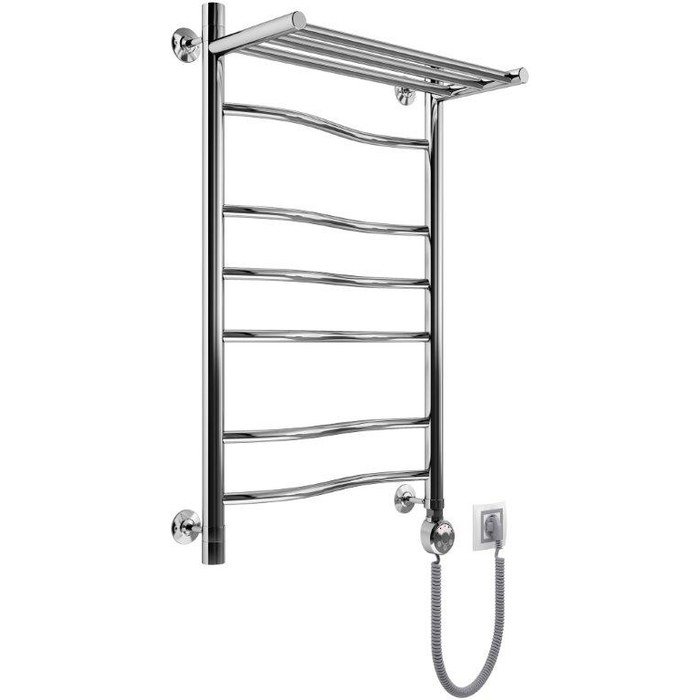 Полотенцесушитель Маргроид Волна с полкой el поможет украсить интерьер ванной, нормализуется уровень влажности и повысит температурные характеристики воздуха до комфортных показателей. Также представленное устройство эффективно применяется для высушивания различных вещей, белья и полотенец и отличается наличием большого количества полезной площади.
