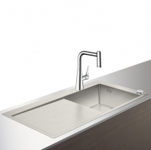 Тип продукта: Встроенная раковина длина: 1040 мм Ширина: 510 мм Гарантия производителя: 5 лет глубина: 190 мм Основные характеристики: • Серия: Выбрать • исх. производитель: 43208 Дополнительная информация: • Для установки в столешницы от 25 мм • раковина из нержавеющей стали • Количество баков: 1 основной бак • с опорожнением • Отверстие для метчика и отверстие для перфорированного блока управления • Ориентация: правая чаша • Глубина мойки: 190 мм • Размер столешницы под столешницу: 60 см • Тип монтажа: плоский на столешницу (саморегулирующийся) или утопленный • Положение перелива: на правой стороне раковины • Усиление обода для водонепроницаемого и стабильного седла смесителя • Угловой радиус: 10 мм • Тип G соединение ? • Размер подключения: DN15 • Расход 7 л / мин • Подходит для проточных водонагревателей • Керамический картридж • Магнитный держатель для душа MagFit • Встроенный обратный клапан • Диапазон поворота 110 ° / 150 ° • Ламинарная струя и струя душа • ComfortZone 220 • Запираемая струя душа, автоматический возврат ручкой • SBox для бесшумной, гладкой и защищенной от брызг направляющей в шкафу, под рабочей поверхностью, с удлинением 76 см • Интуитивно понятная функция запуска и остановки потока воды, вращения: автоматическое опорожнение • Включенные предметы: встроенная раковина, кухонный кран, sBox, автоматический набор для сброса и перелива Раковины в нашем каталоге созданы ведущими брендами сантехнического рынка и имеют сертификаты качества. Мойка комбинированная Hansgrohe Select 43208800 — яркий пример того, как правильно сочетать практичность и безупречную эстетику. У модели эргономичная форма, удобная глубина и универсальный дизайн, а значит — она идеально будет смотреться во многих актуальных интерьерных стилях. Изделие выполнено из надежного материала, который не боится износа, поэтому к исходной сумме 147966 руб не придется в скором времени добавлять средства на обновление покрытия или реконструкцию. Поверхность легко чистится от любых загрязнений и долго сохраняет первозданный вид, устойчива к размножению бактерий и температурным перепадам.