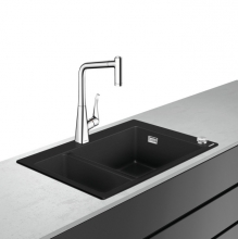 состоит из: встроенной раковины, однорычажного кухонного смесителя на 2 отверстия, блока управления, шланговой коробки, автоматического комплекта для сбора отходов и перелива материал мойки: SilicaTec количество чаш: 1 основная чаша и 1 дополнительная чаша Отверстие для сверления предварительно определено (см. чертеж в масштабе) глубина мойки: 190 мм размеры выреза: 750 х 490 мм размер шкафа: 80 см тип установки: topmount Положение перелива: с правой стороны основной чаши тип подключения: G ? соединения Размер соединения: DN15 скорость потока 8 л / мин подходит для проточных водонагревателей керамический картридж Магнитная подставка для душа MagFit встроенный обратный клапан Диапазон поворота регулируется в 2 шага до 110 ° или 150 ° ламинарный спрей и спрей для душа ComfortZone 320 спрей для душа с замком, спрей возвращается автоматически при закрытии ручки sBox для бесшумного, плавного и защищенного наведения шланга в шкафу, под рабочей поверхностью, с удлинением до 76 см нажатие блока управления: интуитивно понятная функция запуска и остановки потока воды, поворот: автоматический слив Раковины в нашем каталоге созданы ведущими брендами сантехнического рынка и имеют сертификаты качества. Мойка комби AXOR 43215000 — яркий пример того, как правильно сочетать практичность и безупречную эстетику. У модели эргономичная форма, удобная глубина и универсальный дизайн, а значит — она идеально будет смотреться во многих актуальных интерьерных стилях. Изделие выполнено из надежного материала, который не боится износа, поэтому к исходной сумме 88543 руб не придется в скором времени добавлять средства на обновление покрытия или реконструкцию. Поверхность легко чистится от любых загрязнений и долго сохраняет первозданный вид, устойчива к размножению бактерий и температурным перепадам.