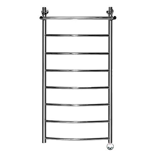 Электрический полотенцесушитель Ника ЛД/ВП Электрическая Лесенка Дуга/Верхняя Полка 120х50 -8 выполняет не только практическую роль, но и дополняет эстетику интерьера современной ванной комнаты. Как следует из названия электрический полотенцесушитель - элементом нагрева служит ТЭН нагревающий специальный теплоноситель в трубках. Помимо перекладин в виде дуг, полотенцесушитель снабжен полкой, размещенной в верхней части.