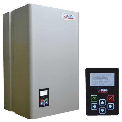 РЭКО 7ПМ электрокотел с возможностями котельной. Для осуществления всего цикла работы котельной присоединяются циркуляционный насос Grundfos (Германия), расширительный бак CIMM (Италия), группа безопасности WATTS (Италия). Для связки в одну мини-котельную присоединительные патрубки 3/4, размещенные внизу котла, что позволяет удобно и легко произвести монтаж.