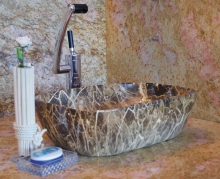 Раковина для ванной G ID 54415 модель Mnc178 Монтируется на столешницу или мебель. Керамическая дизайнерская раковина G Mnc178 покрыта каменной фактурой коричневого цвета со светлыми прожилками путём современных высокотехнологических процессов. Все изделия GID производятся из прочного высококачественного сырья, в состав которых входят первоклассные неорганические материалы и их смеси с минеральными добавками, а глубокий и равномерный обжиг делает наш фаянс крепким. Поддерживать цветную раковину в чистоте не составит труда. Для фаянсовых поверхностей мы рекомендуем моющие жидкости и гели со значением pH не более 10. Накладная раковина под камень Mnc178 Длина 435 мм Глубина 325 мм Высота 135 мм Вес 10 кг Цвет Коричневый Тип установки Накладная Раковины в нашем каталоге созданы ведущими брендами сантехнического рынка и имеют сертификаты качества. Раковина GID 54415 — яркий пример того, как правильно сочетать практичность и безупречную эстетику. У модели эргономичная форма, удобная глубина и универсальный дизайн, а значит — она идеально будет смотреться во многих актуальных интерьерных стилях. Изделие выполнено из надежного материала, который не боится износа, поэтому к исходной сумме 9230 руб не придется в скором времени добавлять средства на обновление покрытия или реконструкцию. Поверхность легко чистится от любых загрязнений и долго сохраняет первозданный вид, устойчива к размножению бактерий и температурным перепадам.