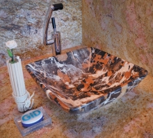 Раковина для ванной GID 54420 модель Mnc183 Монтируется на столешницу или мебель. Керамическая дизайнерская раковина GID Mnc183 покрыта каменной фактурой коричневого оттенка со светлыми прожилками путём современных высокотехнологических процессов. Все изделия GID производятся из прочного высококачественного сырья, в состав которых входят первоклассные неорганические материалы и их смеси с минеральными добавками, а глубокий и равномерный обжиг делает наш фаянс крепким. Поддерживать цветную раковину в чистоте не составит труда. Для фаянсовых поверхностей мы рекомендуем моющие жидкости и гели со значением pH не более 10. Накладная раковина под камень Mnc183 Длина 415 мм Глубина Высота 135 мм Вес 8 кг Цвет Коричневый Тип установки Накладная Раковины в нашем каталоге созданы ведущими брендами сантехнического рынка и имеют сертификаты качества. Раковина GID 54420 — яркий пример того, как правильно сочетать практичность и безупречную эстетику. У модели эргономичная форма, удобная глубина и универсальный дизайн, а значит — она идеально будет смотреться во многих актуальных интерьерных стилях. Изделие выполнено из надежного материала, который не боится износа, поэтому к исходной сумме 8775 руб не придется в скором времени добавлять средства на обновление покрытия или реконструкцию. Поверхность легко чистится от любых загрязнений и долго сохраняет первозданный вид, устойчива к размножению бактерий и температурным перепадам.
