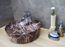 Раковина для ванной GID 54445 модель Mnc536 Монтируется на столешницу или мебель. Керамическая дизайнерская раковина GID Mnc536 покрыта каменной фактурой бордовых оттенков со светлыми прожилками путём современных высокотехнологических процессов. Все изделия GID производятся из прочного высококачественного сырья, в состав которых входят первоклассные неорганические материалы и их смеси с минеральными добавками, а глубокий и равномерный обжиг делает наш фаянс крепким. Поддерживать цветную раковину в чистоте не составит труда. Для фаянсовых поверхностей мы рекомендуем моющие жидкости и гели со значением pH не более 10. Накладная раковина под камень Mnc536 Длина 450 мм Глубина Высота 140 мм Вес 8 кг Цвет Бордовый Тип установки Накладная Отверстие под смеситель да Раковины в нашем каталоге созданы ведущими брендами сантехнического рынка и имеют сертификаты качества. Раковина GID 54445 — яркий пример того, как правильно сочетать практичность и безупречную эстетику. У модели эргономичная форма, удобная глубина и универсальный дизайн, а значит — она идеально будет смотреться во многих актуальных интерьерных стилях. Изделие выполнено из надежного материала, который не боится износа, поэтому к исходной сумме 8580 руб не придется в скором времени добавлять средства на обновление покрытия или реконструкцию. Поверхность легко чистится от любых загрязнений и долго сохраняет первозданный вид, устойчива к размножению бактерий и температурным перепадам.