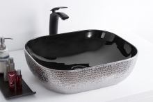 Раковина для ванной GID Luxe Line 53306 модель D1302h020 Монтируется на столешницу или мебель. Дизайнерская раковина GID D1302h020 покрыта снаружи кожаной фактурой серебряного цвета, а внутренняя часть черной глазурью. Все изделия GID производятся из прочного высококачественного сырья, в состав которых входят первоклассные неорганические материалы и их смеси с минеральными добавками, а глубокий и равномерный обжиг делает наш фаянс крепким. Поддерживать цветную раковину в чистоте не составит труда. Для фаянсовых поверхностей мы рекомендуем моющие жидкости и гели со значением pH не более 10. Накладная цветная раковина D1302h020 Длина 505 мм Глубина 405 мм Высота 135 мм Вес 10 кг Цвет Чёрный / Серебряный Тип установки Накладная Раковины в нашем каталоге созданы ведущими брендами сантехнического рынка и имеют сертификаты качества. Раковина GID Luxe Line 53306 — яркий пример того, как правильно сочетать практичность и безупречную эстетику. У модели эргономичная форма, удобная глубина и универсальный дизайн, а значит — она идеально будет смотреться во многих актуальных интерьерных стилях. Изделие выполнено из надежного материала, который не боится износа, поэтому к исходной сумме 10790 руб не придется в скором времени добавлять средства на обновление покрытия или реконструкцию. Поверхность легко чистится от любых загрязнений и долго сохраняет первозданный вид, устойчива к размножению бактерий и температурным перепадам.