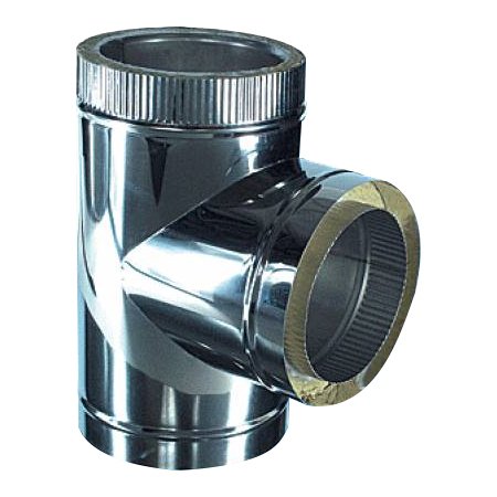 Как с внутренней, так и с внешней стороны тройник сэндвич 90 260*180 изготовлен из жаропрочной нержавеющей стали высокого качества, и соединен теплоизоляционным слоем. Представленный элемент предназначен для отвода конденсата.