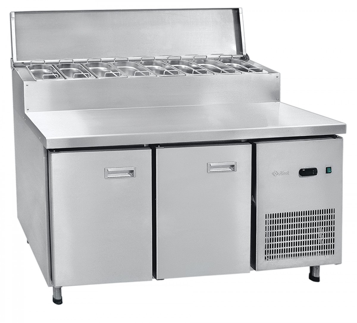 | Комплектация | комплектуется двумя полками под GN 1/1 и имеет в верхнем отсеке 8 гастроемкостей GN 1/4-150 мм под общей откидной крышкой |