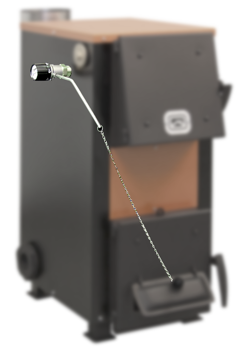 Регулятор тяги серии КУППЕР 20 - для регулировки температурного режима в котлах Теплодар (модели Куппер ОК-15, ОВК-18, ОК-20, ОВК-10, ОК-30). Прост в обращении, не требует электрических установок и сложных подключений. Процесс сжигания построен по принципу подачи воздуха благодаря регулируемых цепи и рычага.