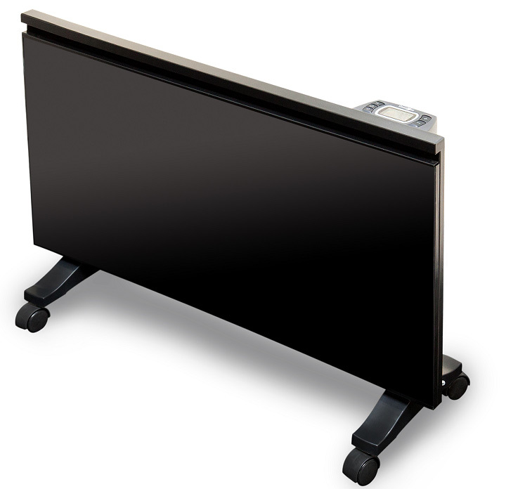 - ИК-излучатель представлен стеклянной глянцевой панелью черного цвета