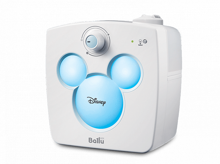 Специально для детей разработана уникальная серия увлажнителей Ballu Kids, включающая в себя приборы с образами популярных героев анимационных фильмов. Совместно с художниками и дизайнерами Disney была создана модель Ballu UHB-240, которая сочетает в себе функцию увлажнителя и светильника – ночника.