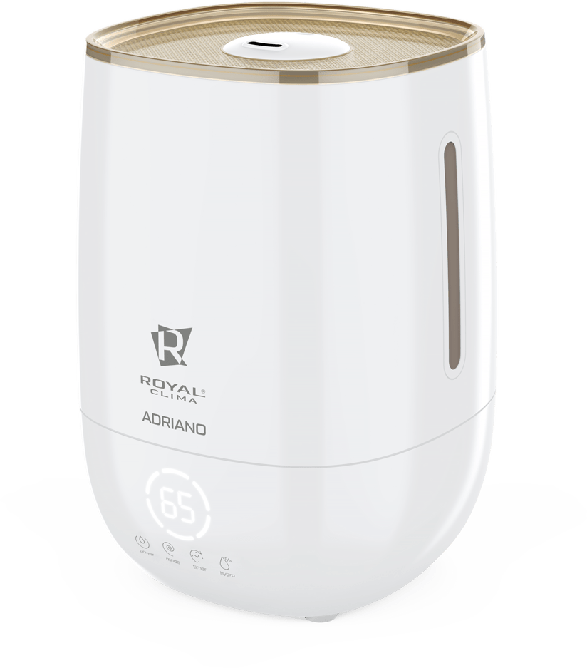 Серия ADRIANO Digital - это сочетание современного дизайна и расширенного функционала: прибор точно определяет уровень влажности и температуру в помещении, встроенный таймер позволяет установить время отключения прибора, «ночной» режим позволяет отключить дисплей для уменьшения иллюминации в комнате. Новая серия оснащена резервуаром для воды объемом 4,8 литра, обеспечивающий до 16 часов эффективной работы прибора. Прибор представлен в двух цветовых решениях: белый корпус, а крышка прибора цвета "шампань" или цвета "серебро".