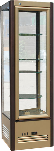 4 вращающиеся стеклянные полки ? 450, подсветка LED, цвет шоколадно-бежевый
