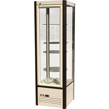 4 вращающиеся стеклянные полки ? 450, подсветка LED, цвет шоколадно-бежевый