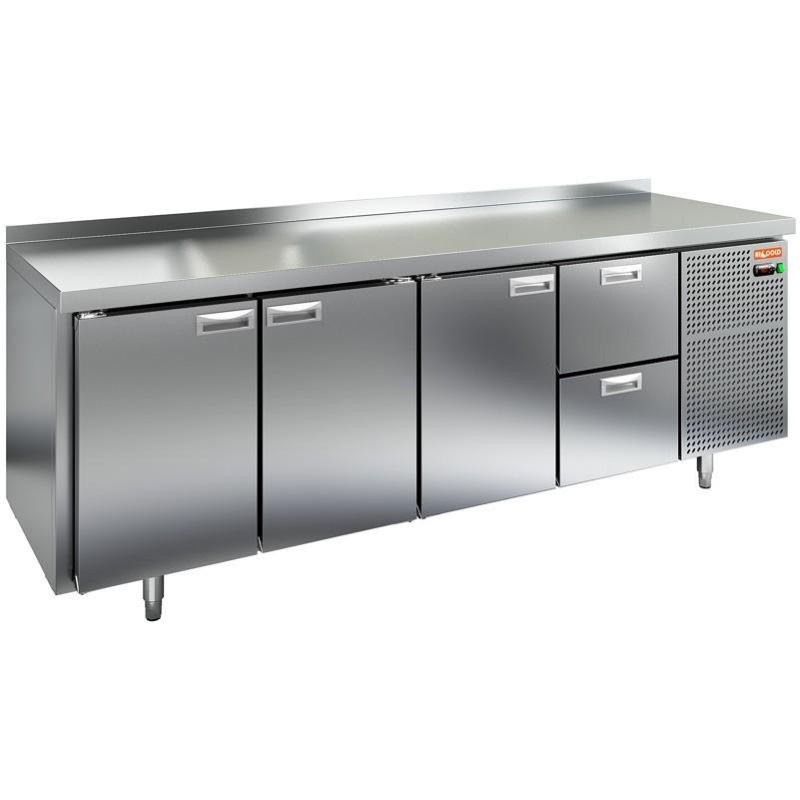 увеличенного объёма, цельнозаливной корпус из нержавеющей стали, электронный блок управления, интеллектуальное размораживание, термическое выпаривание конденсата, двери укомплектованы петлями-доводчиками, новая экономичная модель компрессора