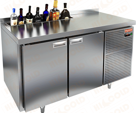 оснащен ванной для льда под бутылки, регулируемые по высоте ножки, цельнозаливной корпус из нержавеющей стали, автоматические доводчики дверей с фиксатором открытого положения, термическое выпаривание конденсата, новая экономичная модель компрессора, нагрузка на полку: 50 кг