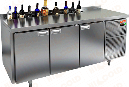 оснащен ванной для льда под бутылки, регулируемые по высоте ножки, цельнозаливной корпус из нержавеющей стали, автоматические доводчики дверей с фиксатором открытого положения, термическое выпаривание конденсата, новая экономичная модель компрессора, нагрузка на полку: 50 кг