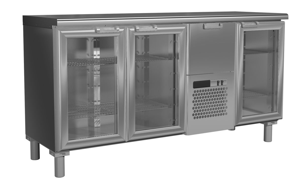 крашенная сталь, 3 стекл. двери+1 ящик над агрегатом, 6 полок