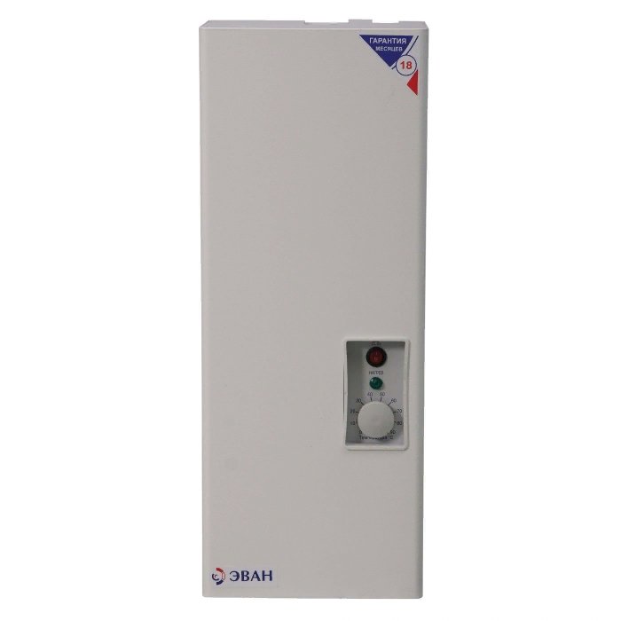 Электрический котел модели Эван С1-9 (220В) отличается широким диапазоном рабочих температур и предназначен для обогрева загородных домов, коттеджей и небольших складских помещений. Прибор надежно защищен от перегрева, поэтому долговечен и безопасен в эксплуатации. Оборудование оснащен удобным пультом управления, который установлен на лицевой части корпуса.