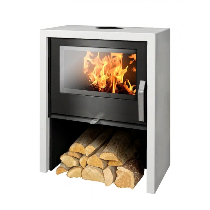 Печь-камин ABX Toledo белая сталь – это компактная модель с отличными тепловыми свойствами. Камин выполнен в стиле модерн и окрашен белой термостойкой эмалью. Процесс горения производится в стальной печи, футерованной вермикулитом, чтобы предотвратить перегрев корпуса. В нижней части конструкции расположен небольшой дровник, предназначенный для хранения и просушки поленьев.