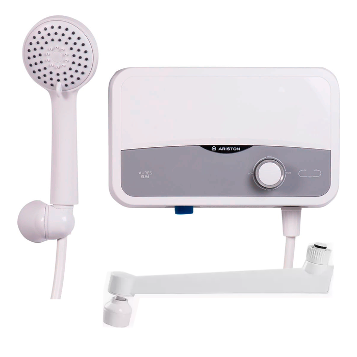 Модельный ряд электрических проточных водонагревателей AURES производства компании Ariston характеризуются компактными размерами и современным дизайном корпуса, благодаря чему данные приборы занимают минимум места и отлично смотрятся в ванной комнате или кухне. Высокий класс защиты позволяет устанавливать эти водонагреватели непосредственно около источника брызг.