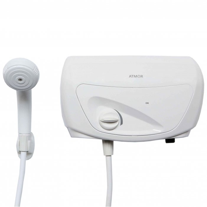 ATMOR (Атмор) CLASSIC 501  3500 Душ – это электрический водонагреватель нового поколения. Проточный тип устройства гарантирует наличие горячей воды в любое время, не зависимо от основного источника ГВС вашего дома. Модель предназначена для обслуживания одной водоразборной точки. В комплекте поставляется удобная душевая насадка, шланг и кронштейн для крепления прибора к стене.