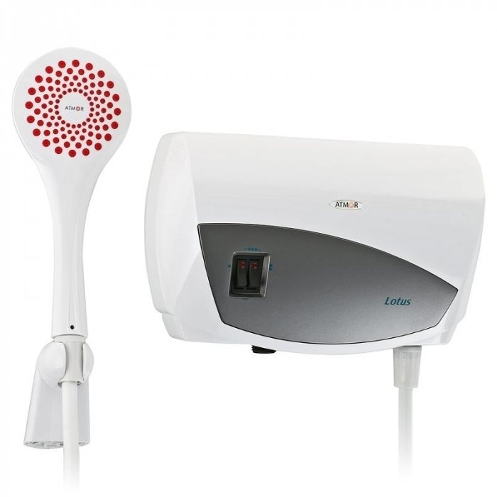 ATMOR LOTUS – серия электрических проточных водонагревателей израильской фирмы ATMOR. Выпускается в двух вариантах мощности – 5 и 7 кВт и в трех модификациях: с краном, с душевой насадкой и с краном и душем одновременно. Имеется возможность ступенчатой регулировки мощности: для 5 кВт – 2кВт + 3 кВт, а для 7 кВт - 3кВт + 4 кВт. Модели серии отличаются плавными, округлыми формами корпуса, элегантным дизайном и компактными размерами.