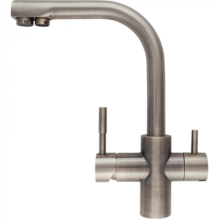 Atoll (Атол) NKD0212АВ-L – это качественный и элегантный кран-смеситель, который обладает приятным внешним видом и имеет компактные габариты. Стоит отметить, что данный кран является комбинированным, а это значит, что прибор способен как подавать отфильтрованную воду, так и водопроводную, которая в дальнейшем будет использована для бытовых нужд. Рассматриваемый агрегат обладает стильным дизайном, из-за чего, кран будет отлично выглядеть при любом интерьере в любых помещениях. Данный кран рекомендуется покупать, если вам, по каким-то причинам, не подошёл кран из коробки, идущий вместе с системой обратного осмоса.