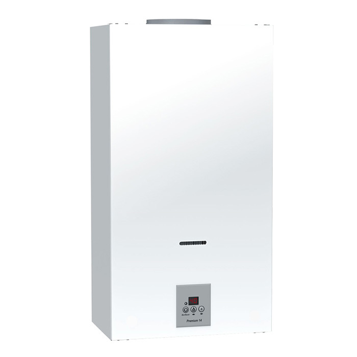 Газовый проточный водонагреватель BaltGaz (БалтГаз) Premium 14 предназначен для бытового использования и характеризуется высокой производительностью – 14 литров в минуту. Устройство отличается современным дизайном и оснащено информативным дисплеем и объемными кнопками для установки необходимой температуры. Производится оборудование в России.