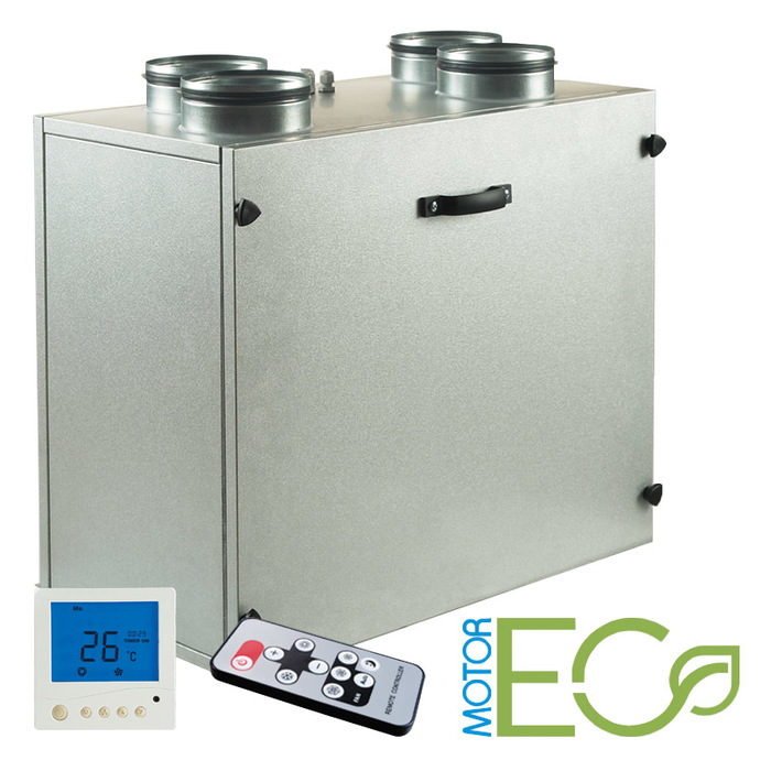 - Для нагнетания и вытяжки воздуха применяются высокоэффективные ЕС-моторы с внешним ротором и центробежным рабочим колесом с загнутыми назад лопатками.