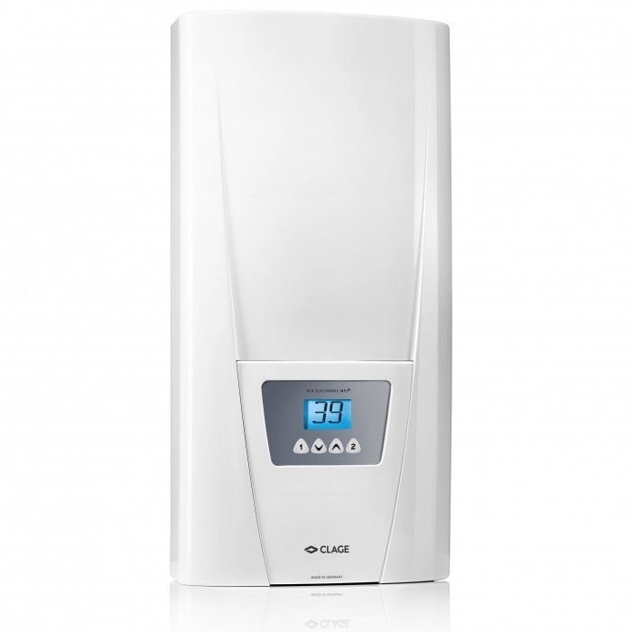 Clage DEX 12 проточный водонагреватель с предуставливаемыми уровнями мощности 8 или 10.5 кВт. Наибольший по мощности из однофазных. Поставка горячей воды при отсутствии централизованного горячего водоснабжения. Благодаря Twin Temperature Control TTC производится установка заданных значений температуры в интервале от 20 до 55 °C. Так же можно выставить постоянное значение.