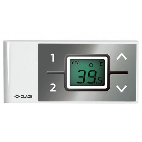 Пульт дистанционного управления Clage FX. Дистанционное устройство снабжено всеми функциями для эксплуатации проточных водонагревателей на расстоянии и произведения точной настройки температуры в промежутке от 20 до 60 °C. Для серии DSX идет в полной комплектации, для серий CEX и DEX пульт ДУ приобретается отдельно. Наличие пульта управления позволяет упростить настройку параметров водонагревателя без необходимости каждый раз переключать кнопки на самом водонагревателе.