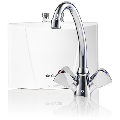 Проточный электрический водонагреватель Clage (Клейдж) M3 / SNM поставляется в комплекте со смесителем, поэтому быстро и удобно монтируется. Оборудование выполнено в компактном размере и предназначено для обслуживания одной точки забора жидкости. Прибор запускается автоматически при включении крана.