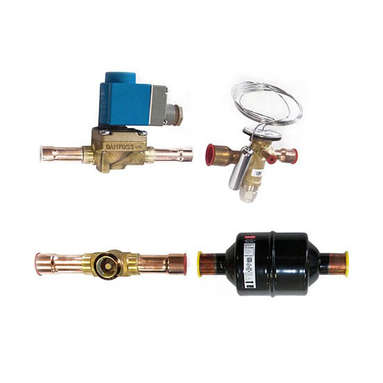 Dantex (Дантекс) 45,6кВт (7/8") 147х5028 – это комплект аксессуаров для обвязки, который предназначен для использования совместно с компрессорно-конденсаторным блоком Dantex модели DK-45WC/SF. В составе этого набора имеется фильтр осушитель, смотровое стекло и терморегулирующий вентиль. Фильтр-осушитель необходим для удаления из контура охлаждения образуемой в ходе работы влаги и инородных мелких частиц. Посредством смотрового стекла мастер сможет осуществлять визуальный осмотр и диагностику холодильного контура ККБ. А терморегулирующий вентиль применяется для плавной коррекции производительной мощности компрессорно-конденсаторного блока.