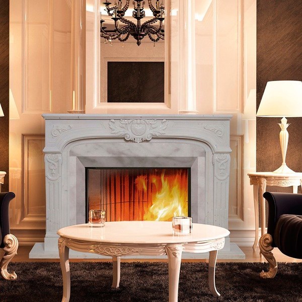 Каминная облицовка DeMarco (Де Марко) ADONIS изготовлена из белого мрамора и украшена резными элементами, боковые колонны и надтопочная часть оформлены декоративной резьбой ручной работы. Устройство славится не только красотой, но и высоким качеством исполнения, и будет благородно смотреться в интерьере гостиной вашего дома.