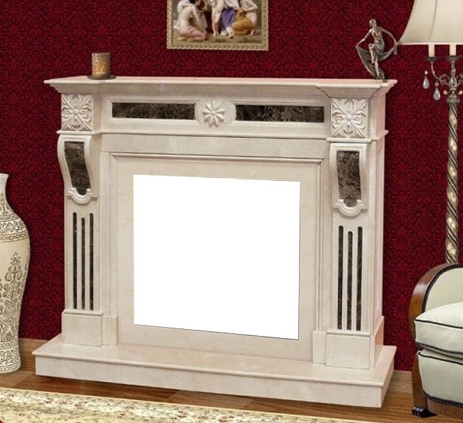 Испанский мрамор Crema Marfil, прочный и устойчивый, как к высоким, так и к низким температурам, – является основным материалом, из которого изготовлен портал для камина Helios. Crema Marfil – один из немногих природных камней, легко подающихся обработке, которые могут иметь одновременно разную текстуру. Так, он может быть практически однородным, а может иметь шикарные узоры из венок и прожилок. Резные вставки на портале рассматриваемой модели выполнены другим, не менее привлекательным сортом мрамора – Emperador, который имеет глубокий темный цвет, контрастный основному и размытые, затейливые полосы кремового цвета.